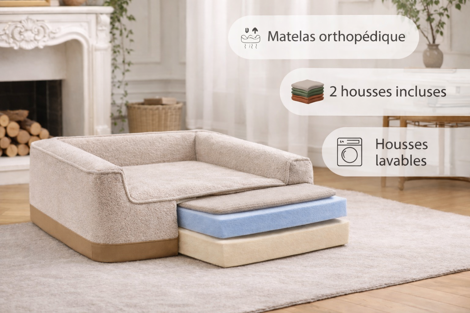 Le signature - Canapé orthopédique pour chien avec 2 housses incluses