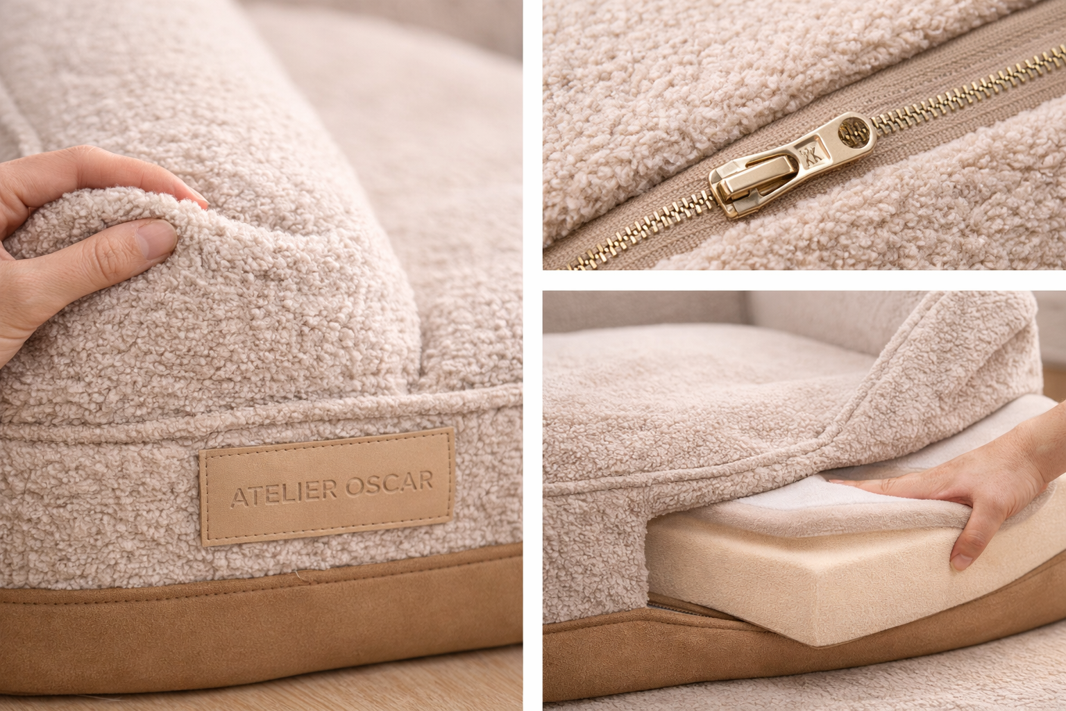 • Tissu bouclé premium, doux et résistant